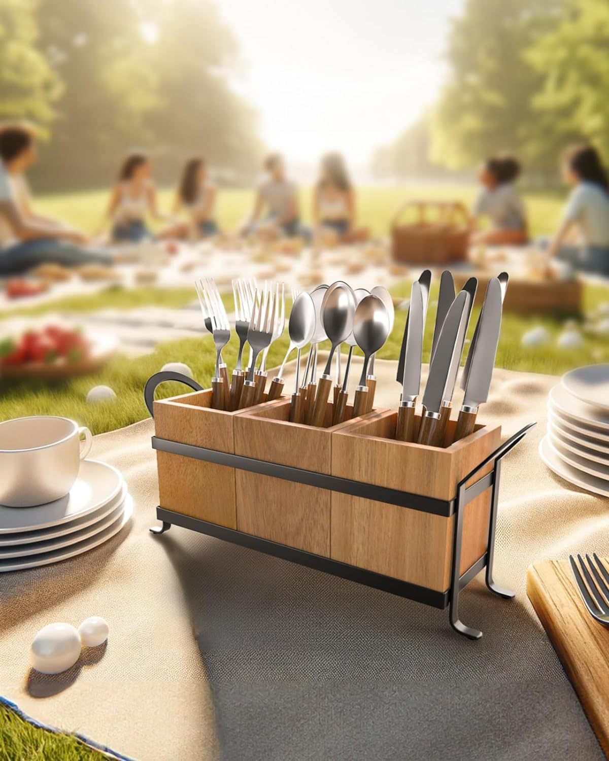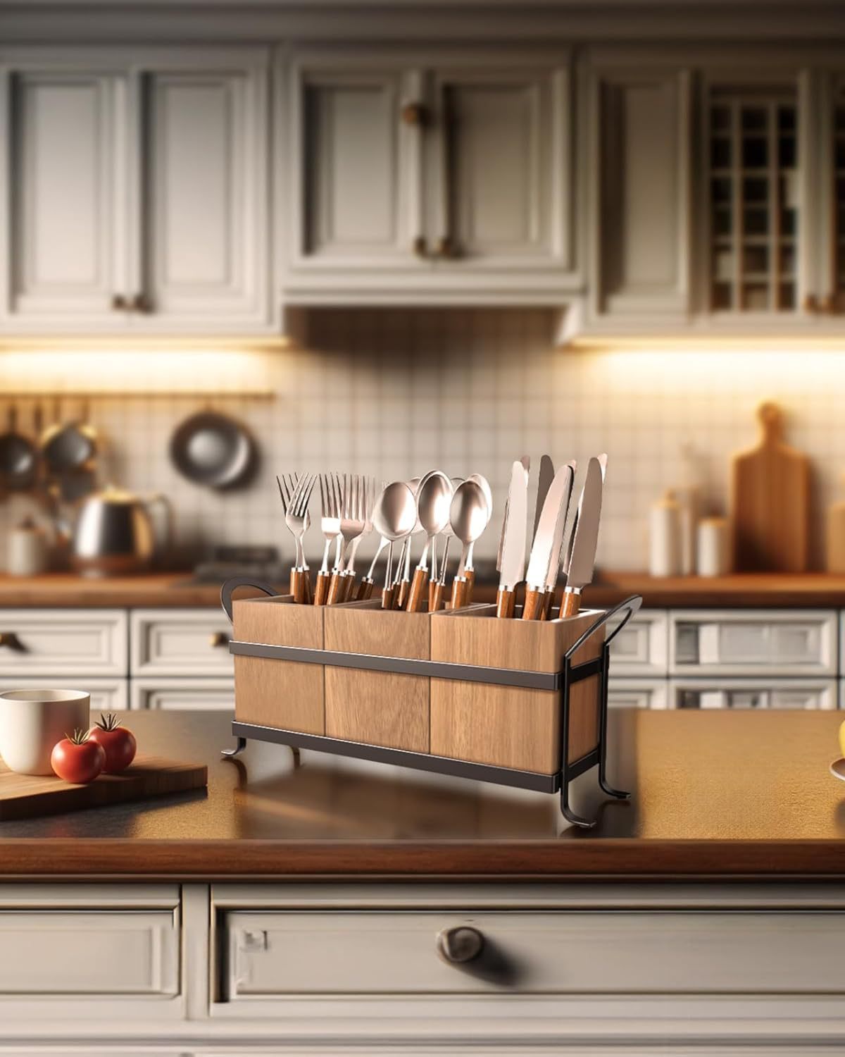 Multi-Grid Design: Efficiently organizes knives, forks, spoons, and other utensils.